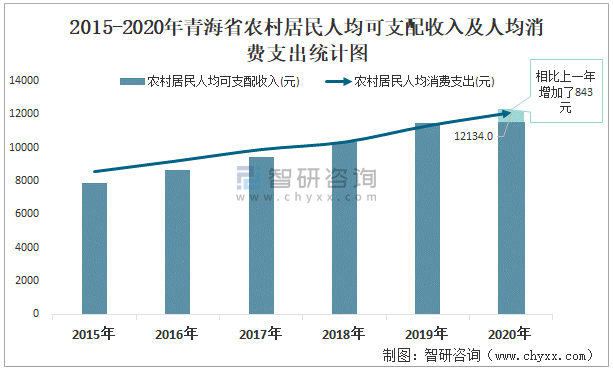 2015-2020年青海省農村居民人均可支配收入及人均消費支出統計圖