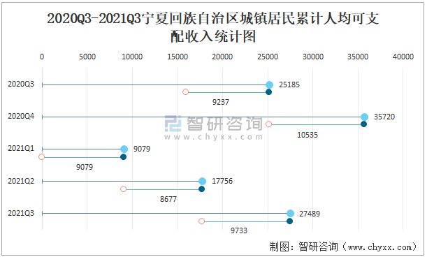 2020Q3-2021Q3寧夏回族自治區城鎮居民累計人均可支配收入統計圖