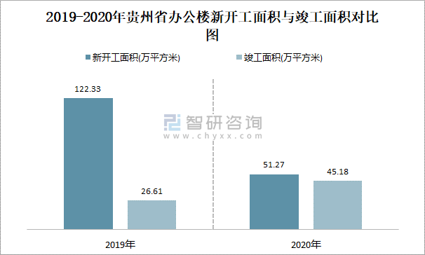 2019-2020年貴州省辦公樓新開工面積與竣工面積對比圖