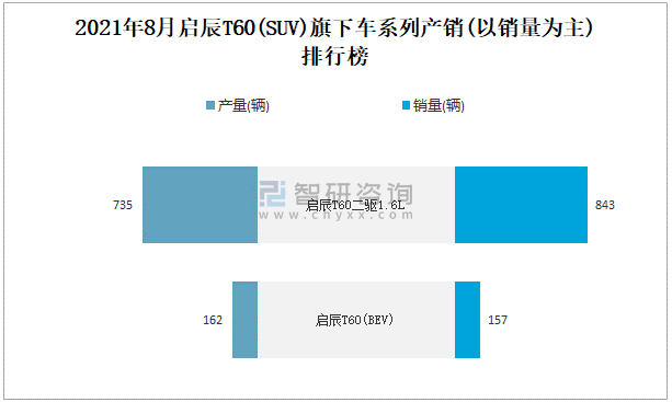 2021年8月啟辰T60旗下車系列產(chǎn)銷(以銷量為主)排行榜