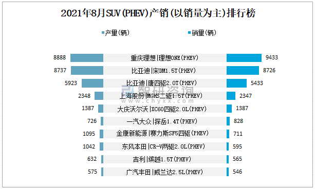 2021年8月SUV(PHEV)產(chǎn)銷(以銷量為主)排行榜
