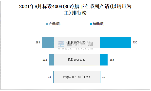 2021年8月標(biāo)致4008旗下車系列產(chǎn)銷(以銷量為主)排行榜