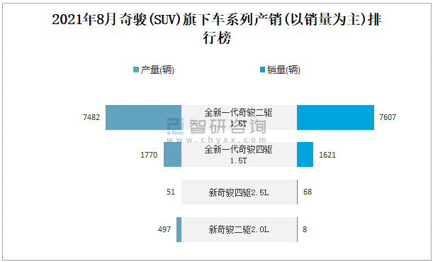 2021年8月奇駿旗下車系列產(chǎn)銷(以銷量為主)排行榜