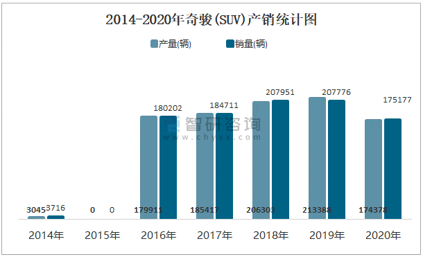 2014-2020年奇駿(SUV)產(chǎn)銷統(tǒng)計圖