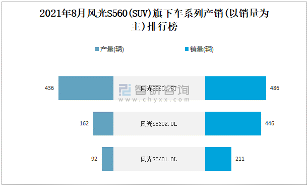 2021年8月風光S560旗下車系列產銷(以銷量為主)排行榜