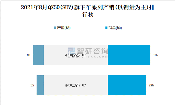 2021年8月QX50旗下車系列產銷(以銷量為主)排行榜