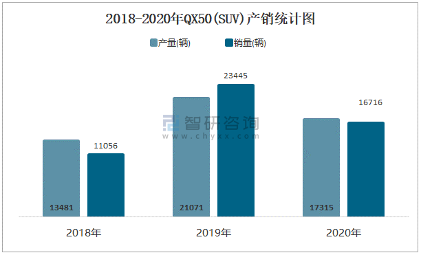 2018-2020年QX50(SUV)產銷統計圖