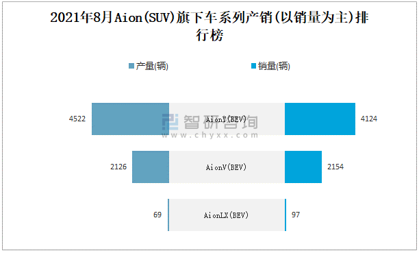 2021年8月AION旗下車系列產銷(以銷量為主)排行榜