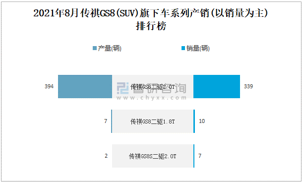 2021年8月傳祺GS8旗下車系列產銷(以銷量為主)排行榜