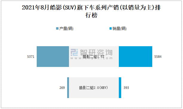 2021年8月皓影旗下車系列產銷(以銷量為主)排行榜
