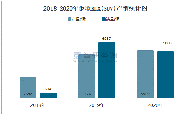 2018-2020年謳歌RDX(SUV)產銷統計圖