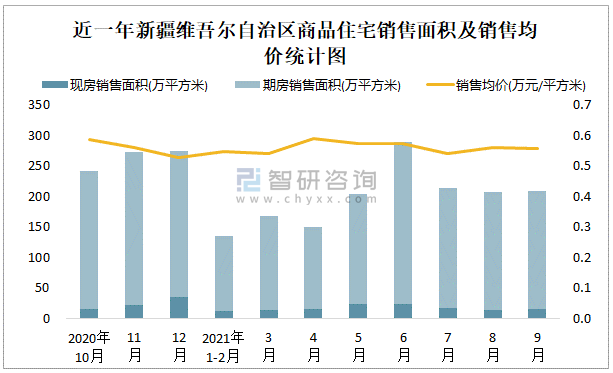 2021年9月新疆維吾爾自治區銷售商品住宅209萬平方米 銷售均價約為0.56萬元/平方米