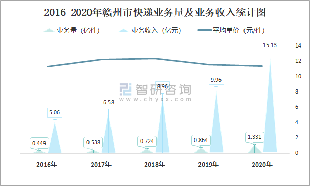 2016-2020年贛州市快遞業(yè)務(wù)量及業(yè)務(wù)收入統(tǒng)計圖