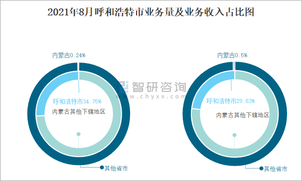2021年8月呼和浩特市業務量及業務收入占比圖