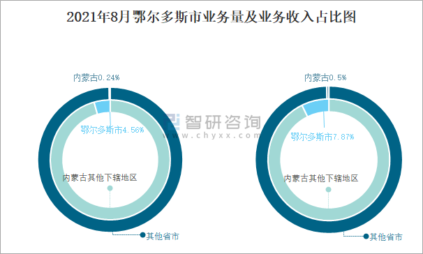 2021年8月鄂爾多斯市業(yè)務(wù)量及業(yè)務(wù)收入占比圖