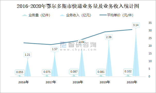 2016-2020年鄂爾多斯市快遞業(yè)務(wù)量及業(yè)務(wù)收入統(tǒng)計(jì)圖