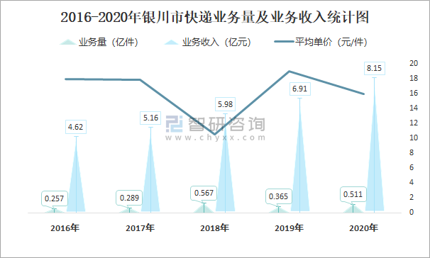 2016-2020年銀川市快遞業務量及業務收入統計圖