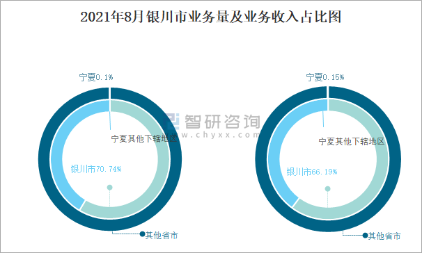2021年8月銀川市業務量及業務收入占比圖