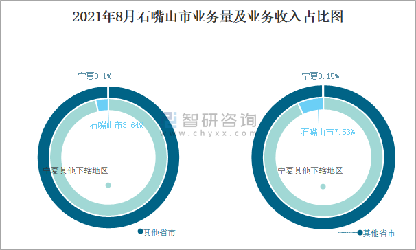 2021年8月石嘴山市業務量及業務收入占比圖