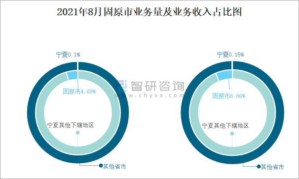 2021年8月固原市業務量及業務收入占比圖