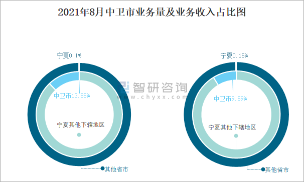 2021年8月中衛(wèi)市業(yè)務(wù)量及業(yè)務(wù)收入占比圖