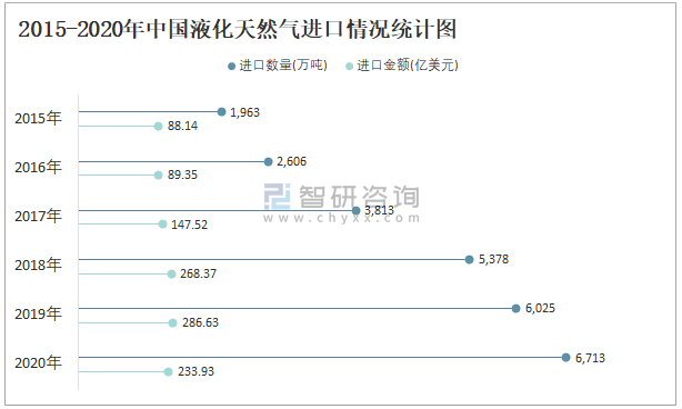 根據(jù)中國(guó)海關(guān)數(shù)據(jù)顯示:2015-2020年中國(guó)液化天然氣進(jìn)口數(shù)量逐年遞增,進(jìn)口金額2019年達(dá)到最大值,此后有所下降;2015-2020年中國(guó)液化天然氣進(jìn)口平均單價(jià)2018年增長(zhǎng)速度最快,并達(dá)到最大值,而2020年中國(guó)液化天然氣進(jìn)口平均單價(jià)下降速度最快,下滑了26.8%。
