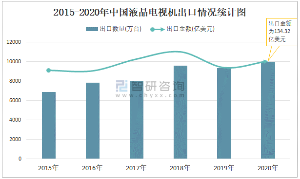 2015-2020年中國(guó)液晶電視機(jī)出口情況統(tǒng)計(jì)圖