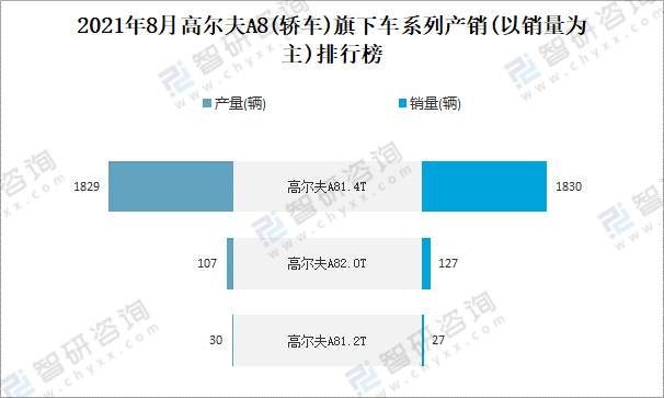 2021年8月高爾夫A8(轎車)旗下車系列產(chǎn)銷(以銷量為主)排行榜