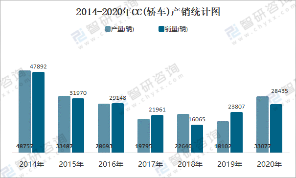 2014-2020年CC(轎車)產(chǎn)銷統(tǒng)計(jì)圖