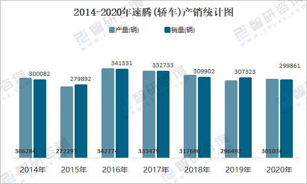2014-2020年速騰(轎車)產銷統(tǒng)計圖