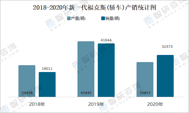 2018-2020年新一代福克斯(轎車)產銷統計圖