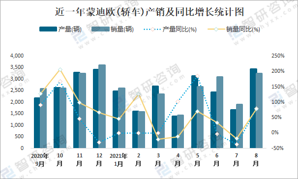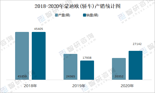 根據中國汽車工業協會數據可知:2021年8月蒙迪歐(轎車)產量為3434輛,同比增長80.2%,銷量為3247輛,同比增長78.1%,當月產銷率為94.55%;2021年1-8月蒙迪歐(轎車)累計產量為18852輛,同比增長113%,累計銷量為18892輛,同比增長25.1%,累計產銷率為100.21%;2018-2020年蒙迪歐(轎車)銷量2019年跌至最低值,此后有所回升,且近3年總銷量大于總產量,清倉庫存409輛。
