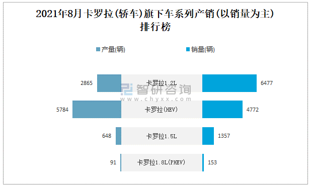 2021年8月卡羅拉(轎車)旗下車系列產銷(以銷量為主)排行榜