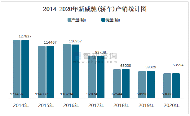2014-2020年新威馳(轎車)產銷統計圖
