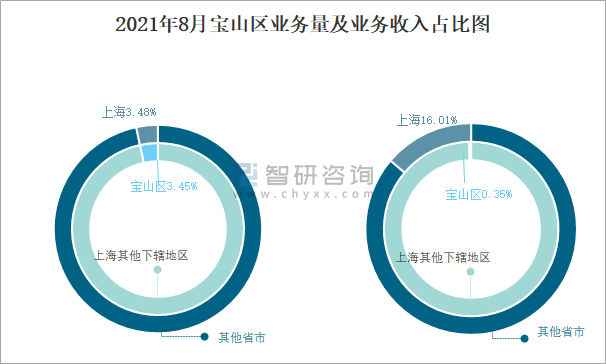 2021年8月寶山區(qū)業(yè)務(wù)量及業(yè)務(wù)收入占比圖