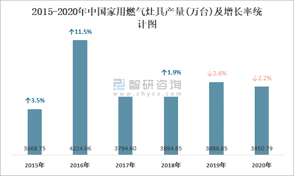 2015-2020年中國(guó)家用燃?xì)庠町a(chǎn)量及增長(zhǎng)率統(tǒng)計(jì)圖