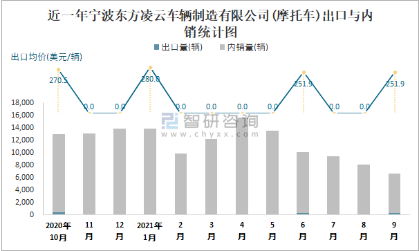 近一年寧波東方凌云車輛制造有限公司出口與內(nèi)銷統(tǒng)計圖