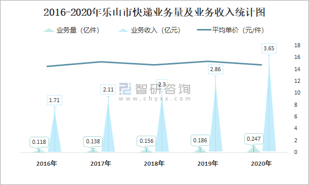 2016-2020年樂山市快遞業務量及業務收入統計圖
