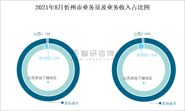 2021年8月忻州市業務量及業務收入占比圖
