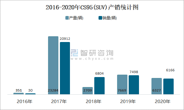 2016-2020年CS95(SUV)產(chǎn)銷統(tǒng)計圖