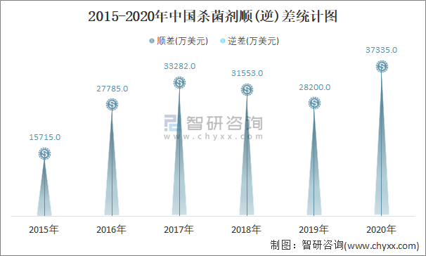 2015-2020年中國殺菌劑順(逆)差統計圖