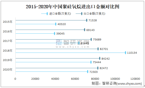 2015-2020年中國(guó)聚硅氧烷進(jìn)出口金額對(duì)比統(tǒng)計(jì)圖