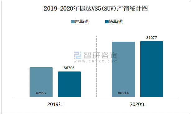 2019-2020年捷達VS5(SUV)產銷統計圖