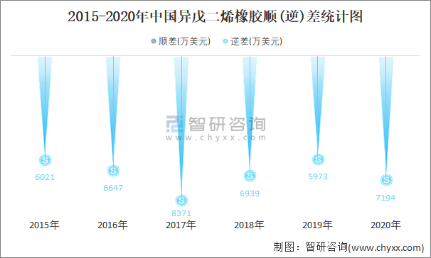 2015-2020年中國異戊二烯橡膠順(逆)差統(tǒng)計(jì)圖