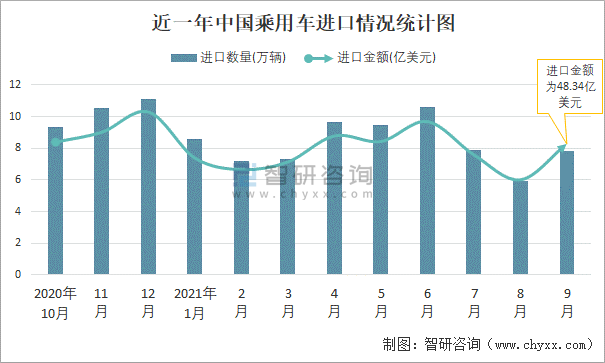 近一年中國乘用車進口情況統計圖
