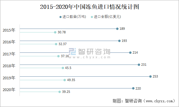 2015-2020年中國凍魚進口情況統計圖