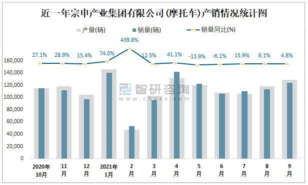 近一年宗申產業集團有限公司產銷情況統計圖