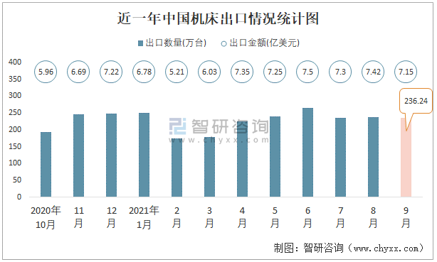 近一年中國(guó)機(jī)床出口情況統(tǒng)計(jì)圖