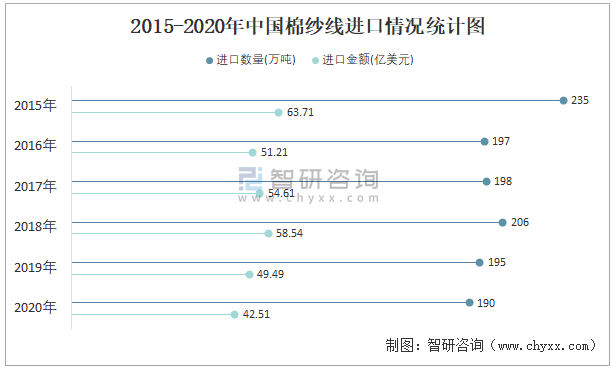 2015-2020年中國棉紗線進口情況統(tǒng)計圖