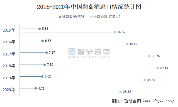 2015-2020年中國(guó)葡萄酒進(jìn)口情況統(tǒng)計(jì)圖